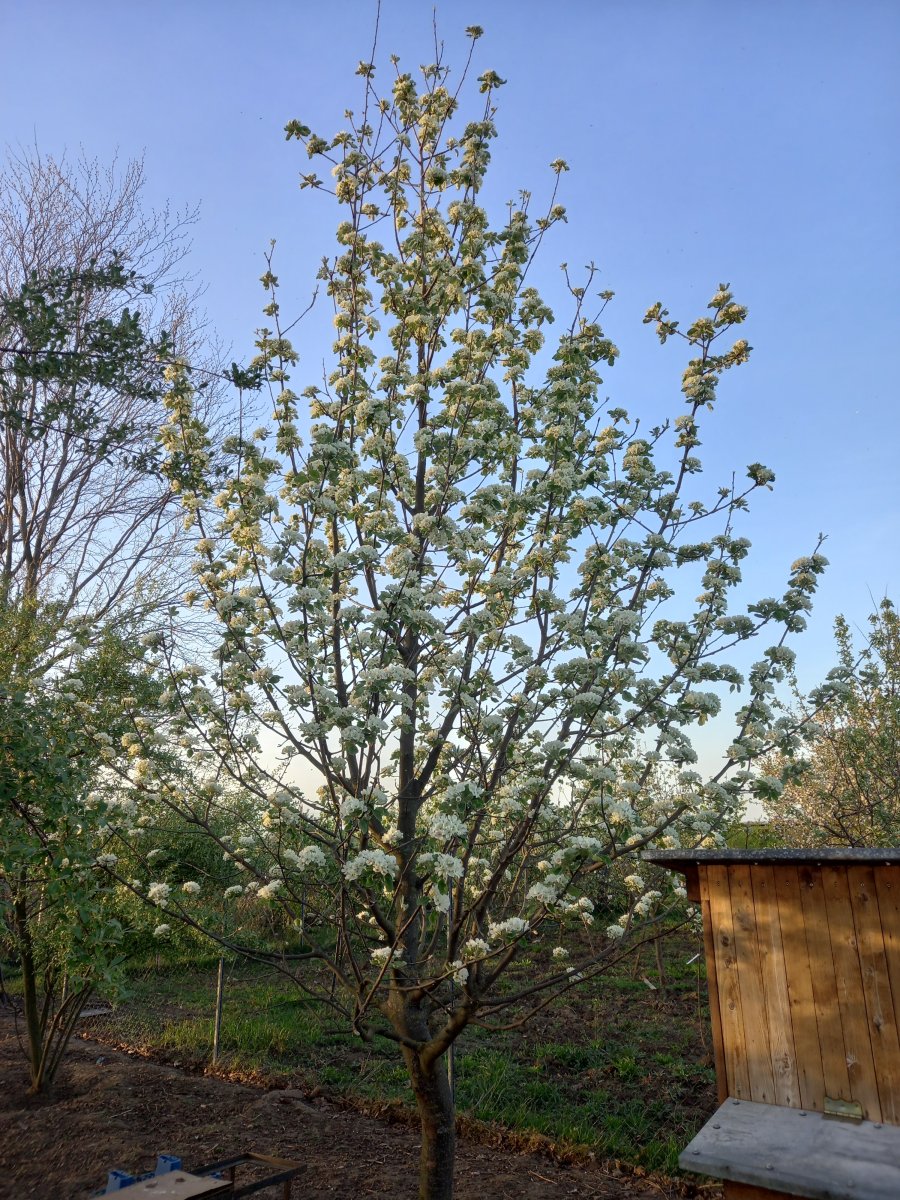 Moje 10 let stará Tatarova hrušeň. Plody jsou maličké, ale mimořádně dobré. A v tom je i potíž, protože letos byly vosy a sršně rychlejší než já. Plánoval jsem to zpracovat na džem a medovinu. Jinak strom je to neskutečně krásný - v každém ročním období. A hrušeň to tak úplně není, je to mezidruhový kříženec hrušně a jeřábu (sorbopyrus).