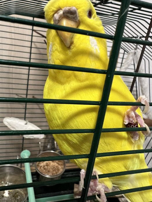 Možná by bylo dobré přidat více fotek. Není to vyfocené z dobrého úhlu. Zkuste fotku z vrchu. U vápenky jsou viditelné bílé krusty a dírky v ozobí a kolem zobáku. Také je patrná změna kolem očí a kůže na nohách.