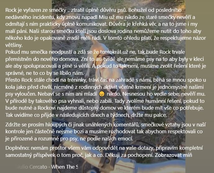 Viděla jsem ale nějaký ten komentář - smečka by prý psa vyloučila, tak ho vyloučili, no.