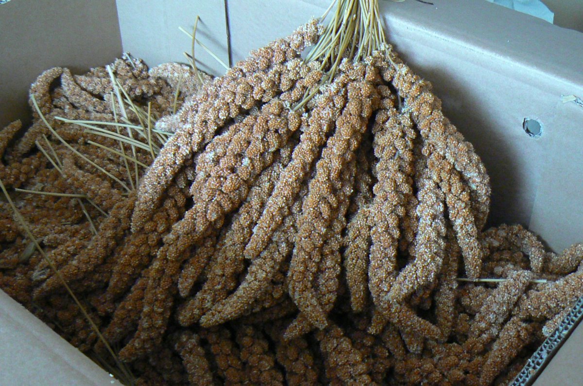 DOVEZU SENEGALSKÉ PROSO V KLASECH A RŮZNÉ PŘENOSKY. ČERVENOU VAJEČNOU SMĚS.