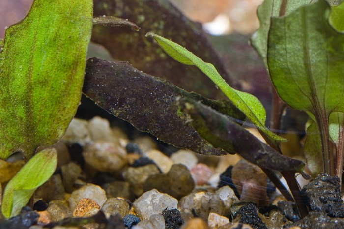 Takže obecně,,,nemít akvárko přerybněný. Ty rostliny vypadají jako echinodoty, které vyměňují listy ze “suchozemských” na podvodní a není neobvyklé, že na těch odumírajících listech řasa je. Já tam ty listy nechávám, protože rostlina z nich čerpá živiny, ale v tomhle případě bych je ustřihla. Kameny bych vyndala a odřasila asi v roztoku sava…do akvárka bych si sehnala nějakej rychlerostoucí rostlinnej plevel a hrst nějakých malých šneků…levatky, okružáky a pak bya pečlivá na údržbu…měnila bych tolik vody kolik zvládnu, klidně třetinu obden…nevím jak je to akvo velký…ale urřo minimálně 50% týdně a vždycky odsála bordel ze dna, ale žádnou hlubokou orbu, nepřekrmovala bych ryby, No a pak bych čekala, jak se to vyvrbí…a za měsíc by se vidělo, zda jsem na dobré cestě.