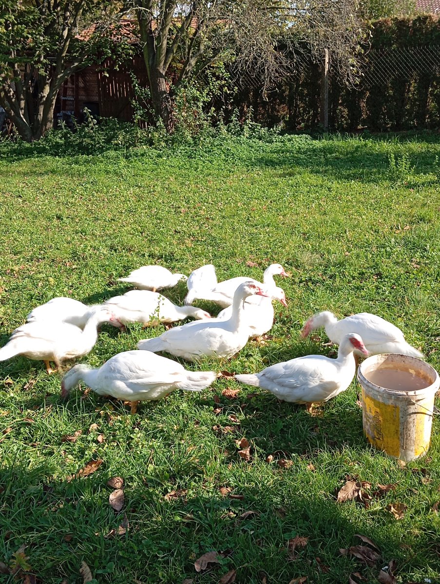 V pohodě, domeček máme na rybníku, takže není nutné zavírat, nehrozí predátor. Možná tak vydra nebo norek (ano, oboje je schopní sebrat i odrostlé káče). ale proti tomu jsou chráněný ohradníkem. Pižmovka se sice válí kolem na trávě kolem rybníka, ale i si ráda poplave a noci tráví v domečku na rybníku.