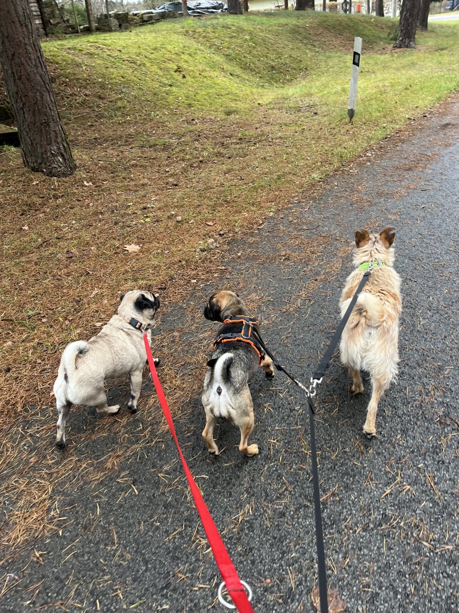a motá se mi to,psi se tak různě přesunují a čmuchají si a venčí se cik cak….