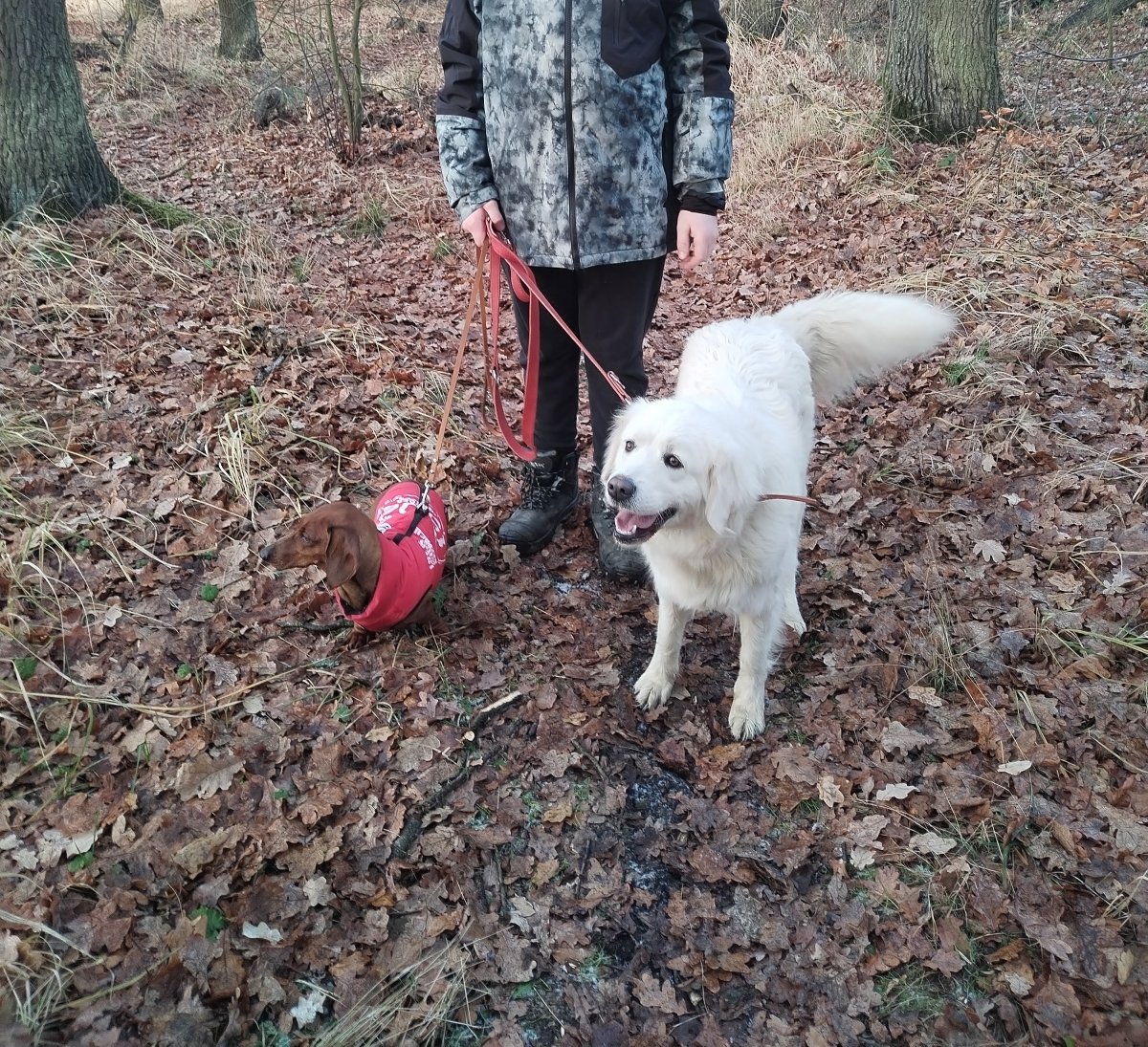 Čuvačka a dlouhosrstý ohař, jsou chlupatí, většinu času venku. Samozřejmě mají své pěkně zateplené boudy, plus možnost zalézt si ke kotli. Ale raději leží venku. A to mě štve a tak na oblíbených venkovních ležení, třeba pod keři mají ještě polystyrenové desky. Ale nejsou hloupý a vím že když se potřebují pěkně vyspat tak spí v boudách.