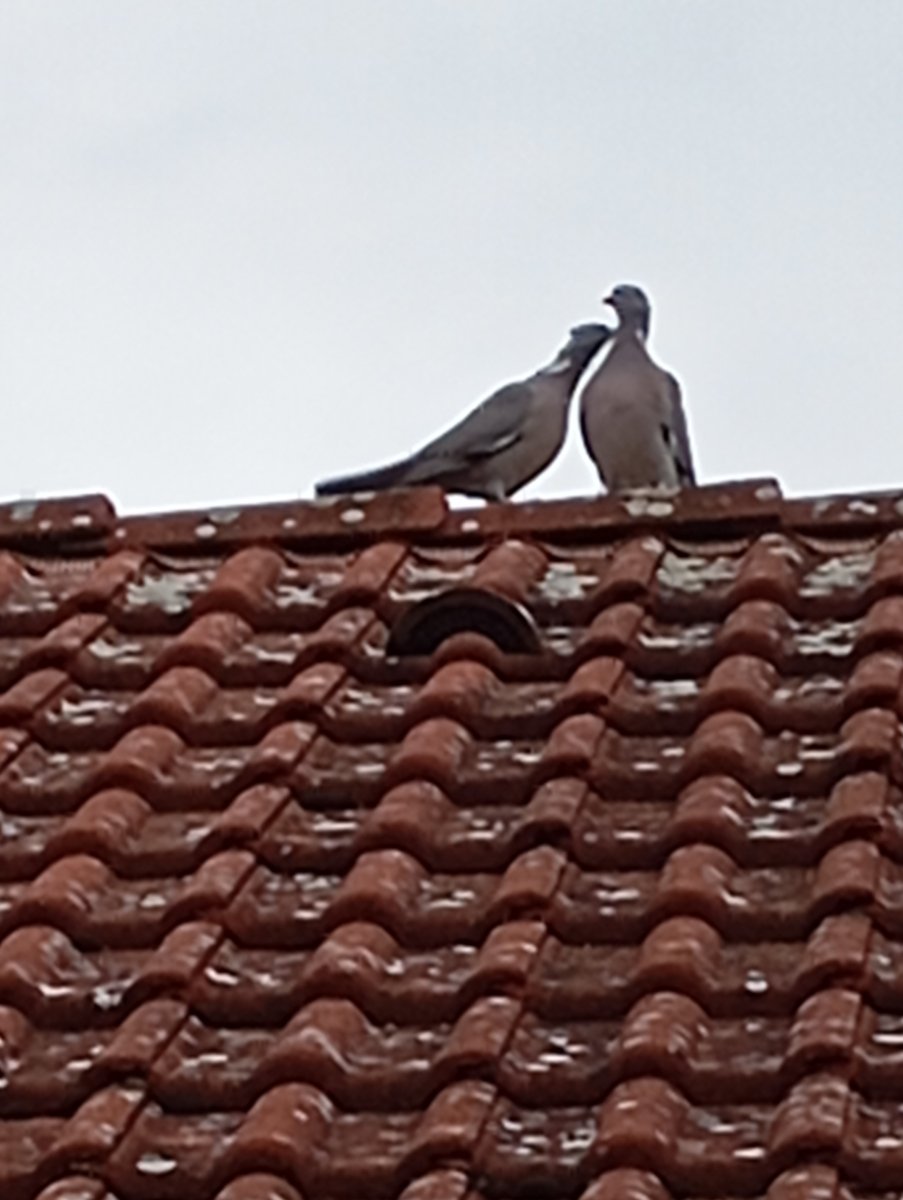 Včera se k nám vrátili holubi doupňáci 🤗🙏…celý den je slyšet jejich namlouvání ve vysokém smrku nebo na střeše..na střeše se pořád “zobáčkují”a páří 😀
