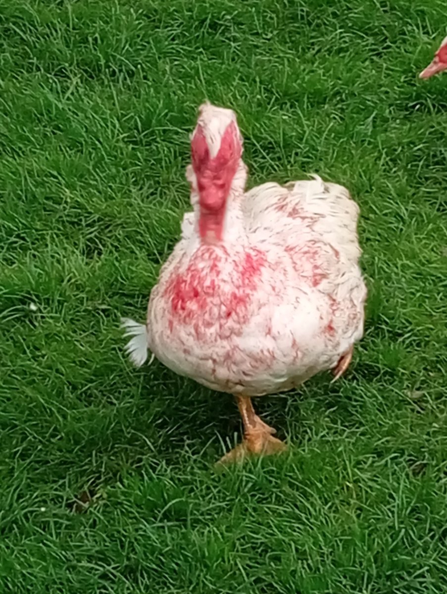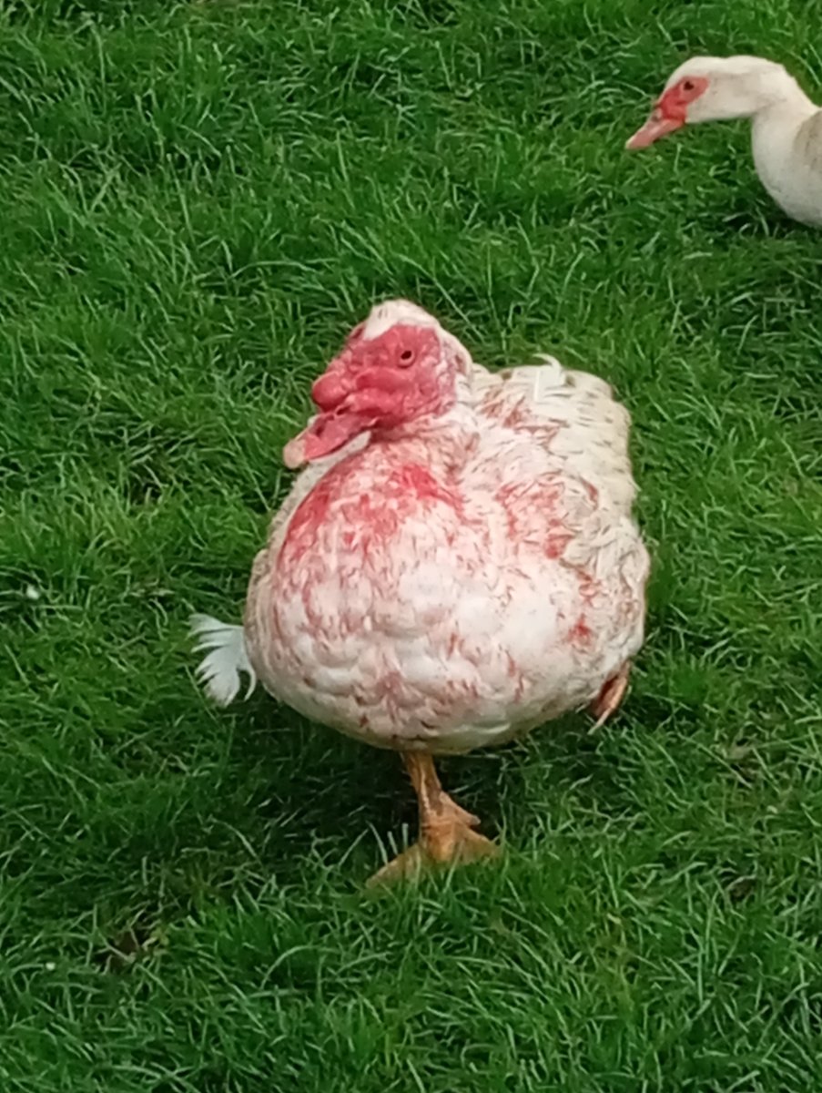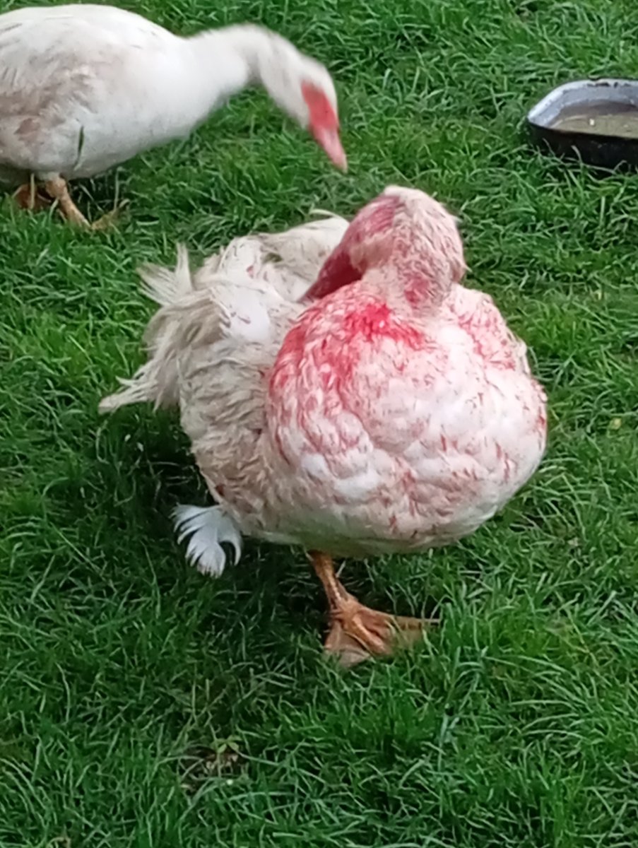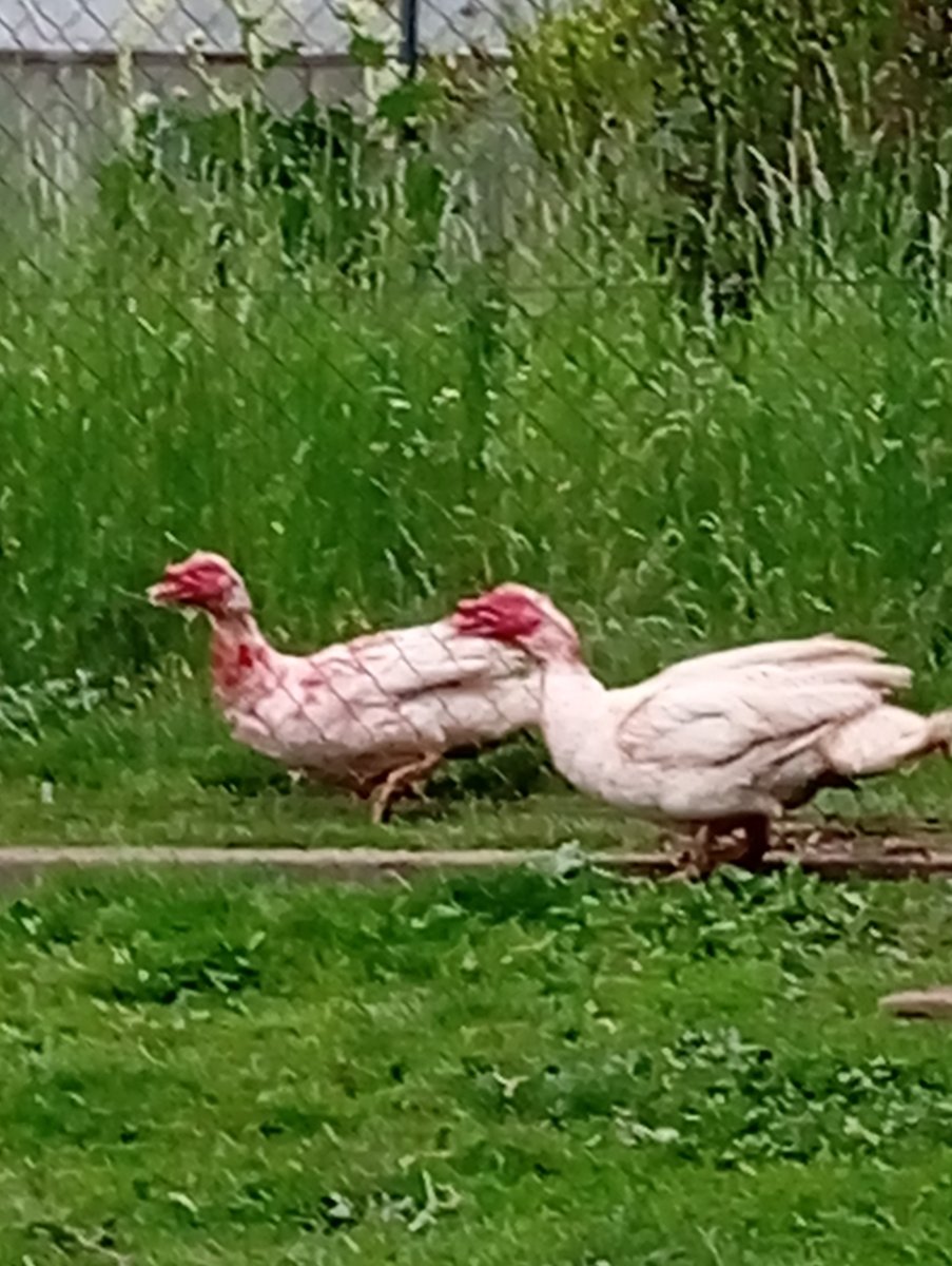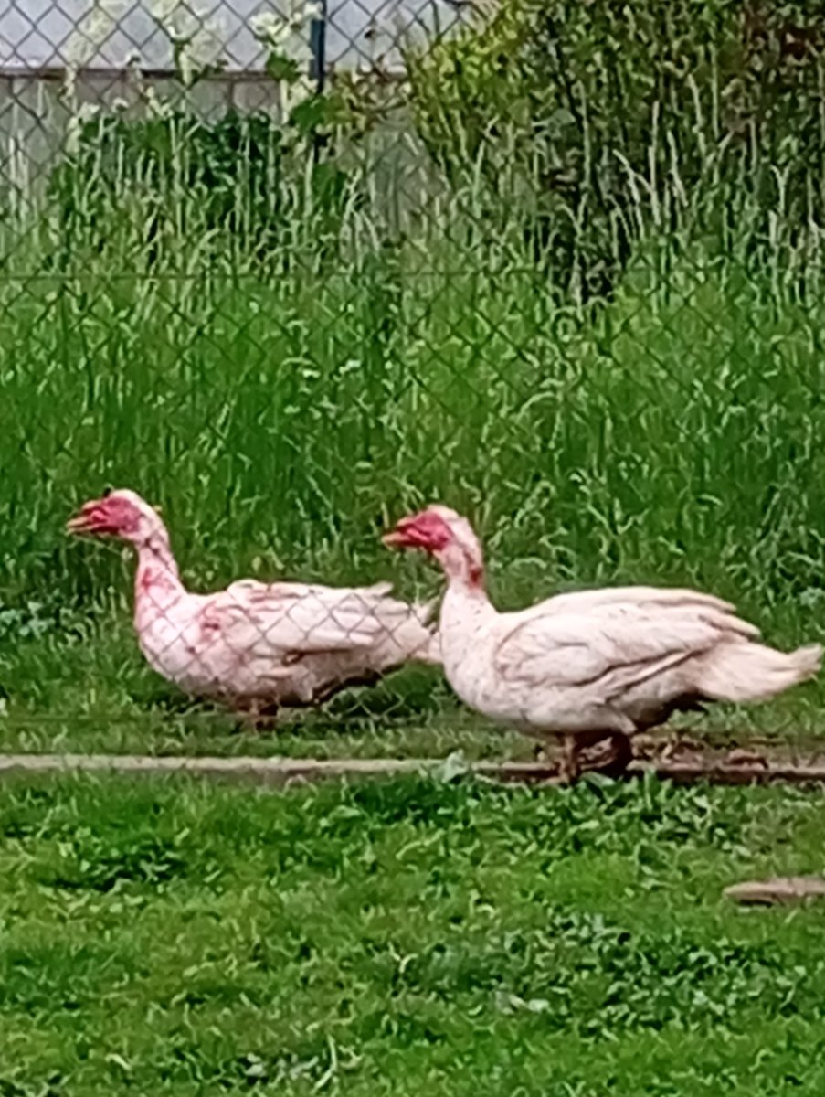 ..to já, dneska po ránu, měla šok😲😱…pan kačer byl úplně od krve 🤦…na tom bílém peří to vypadalo příšerně!!…hned mě napadlo, že asi kuna??..🤔…ale jdu dál, koukám za plot na druhého kačera a ten vypadal podobně 😲🤣🤣🤣!!!…dost to nechápu,ale hoši se servali do krve, netuším z jakého důvodu, jelikož každý má své kačenky😂🤦..a to dokázali přes plot ,přes kari síť,10x10…musím tam dát ještě normální husté pletivo ,aby to příště nedopadlo ještě hůř 🤦😱😂😂…tak jsem vzala hadici,pustila vodu a oba výtečníci dostali pořádnou studenou sprchu😂…už jsou zase bílí 👍👍😄..
