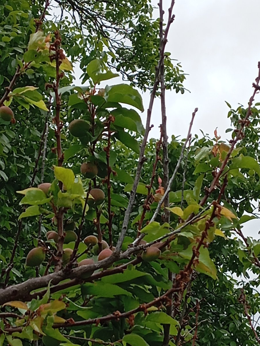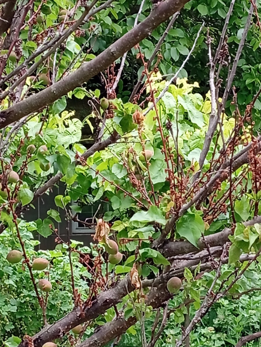 Krásné ráno všem 😀🌞..toho sluníčka se snad dočkáme, až odplynou šedé mraky…posílám fotky svojí jedné meruňky..byla obalená květy ,v době nočních mrazů jsem ji kropila vodou, myslím,že nenamrzla…květy přežily,ale meruňka je divná..hodně proschla🤔…už jednou se jí to samé stalo,je to pár let…druhá meruňka jiné odrůdy,je úplně v pořádku...tak nevím, čím to je 🤔…