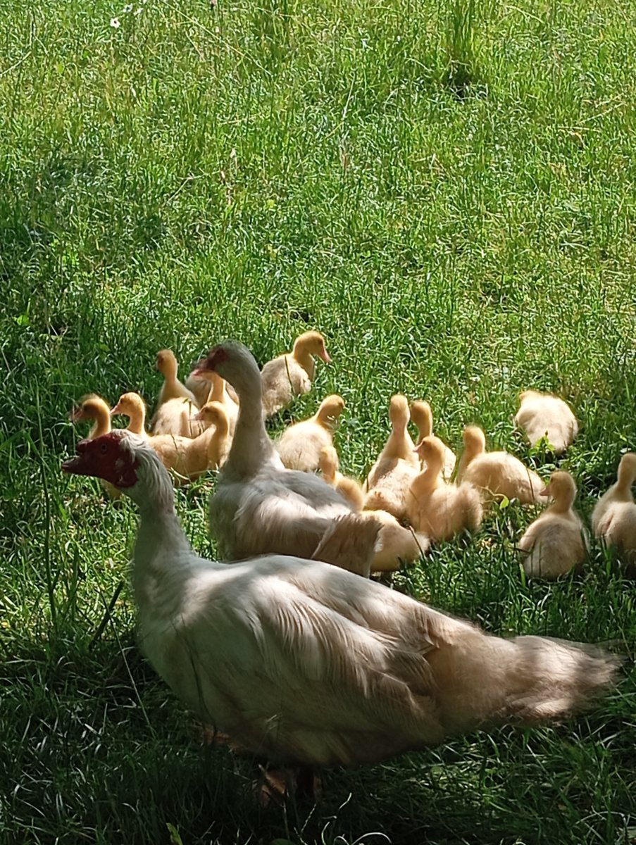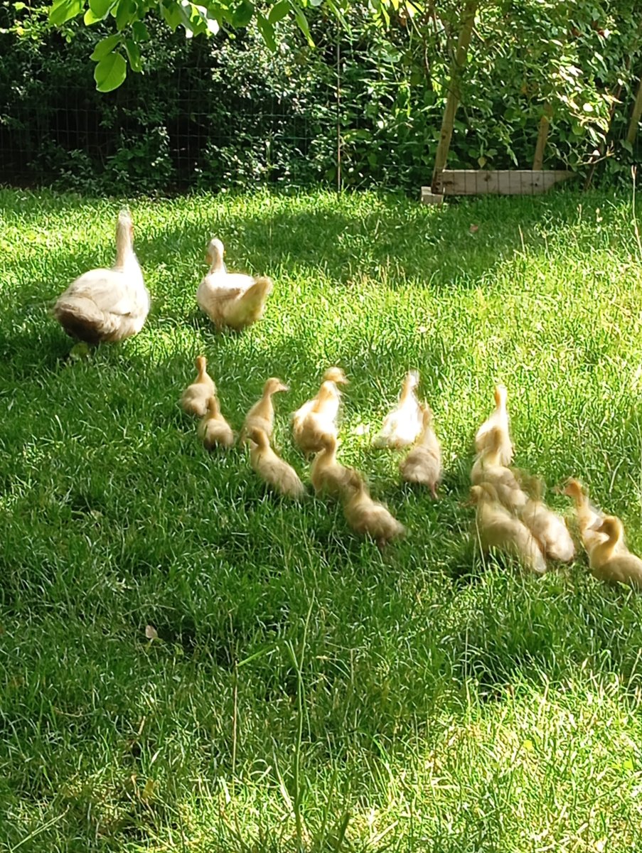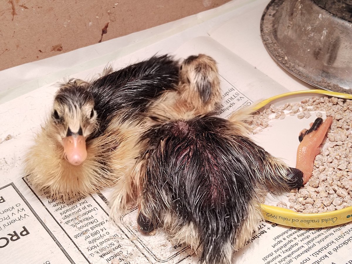 Jedna krůta má osm krůťat, druhé jsme podstrčili šest perlíčat a třetí se včera vylíhla kachňata. Škoda že jsme to nevěděli dřív, líheň už jsme druhým rokem nepotřebovali.