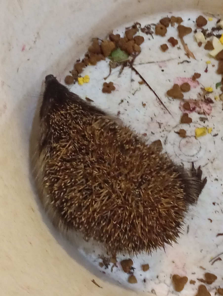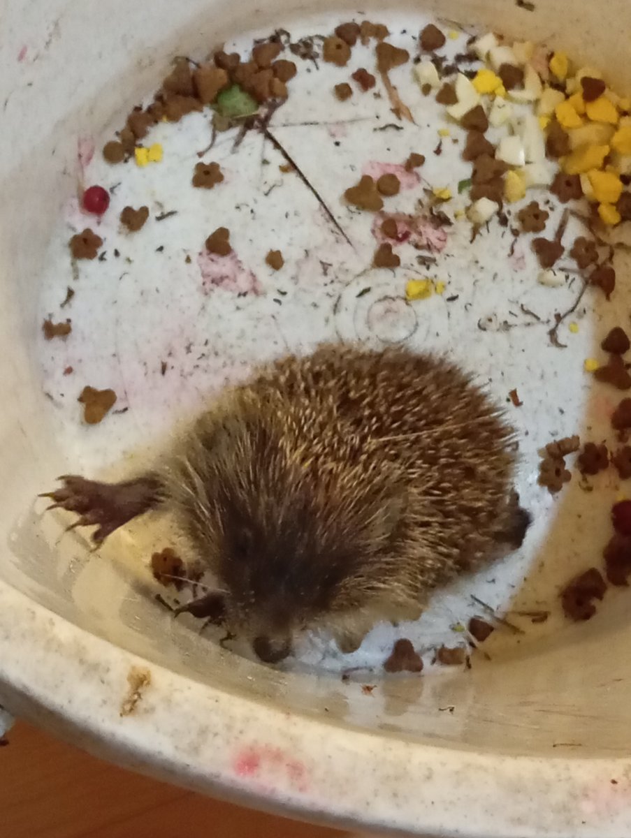 Krásné dopoledne všem 😀🌞…tak já mám od včerejšího večera nové zvířátko 🦔😂🤦.. Betynka, jezevčík, strašně štěkala..tak jsem vyběhla ven,zjistit co se děje..u její misky s granulemi jsem objevila maličkého ježka 🦔😀dala jsem ho kýblu, prodala hrst granulí a vařené vajíčko..byl hladový,hned se na to vrhnul a chroupal granule😀…po chvíli jsem ho přemístila do kotce kralikarny i s krmením👍..teď je zavrtaný v seně, všechno krmení zmizelo 😀👍