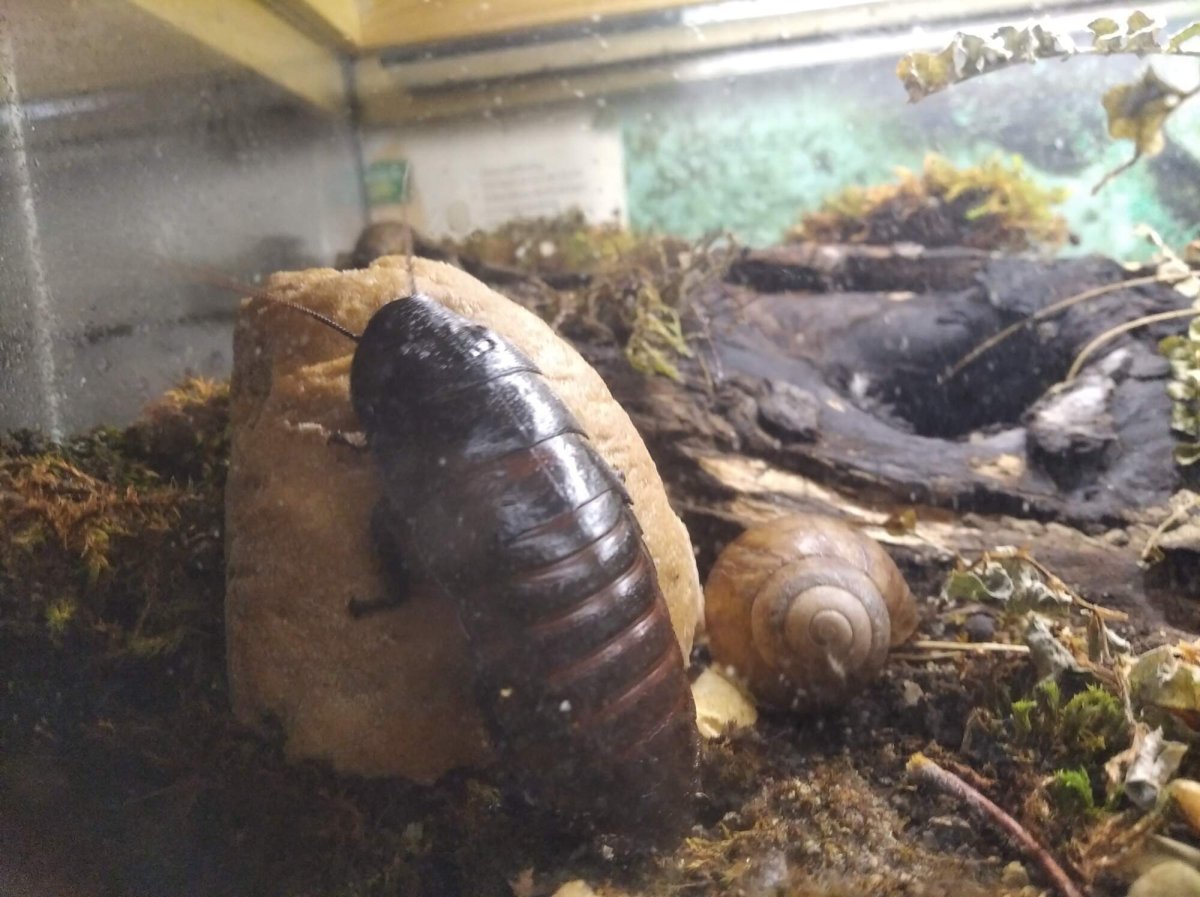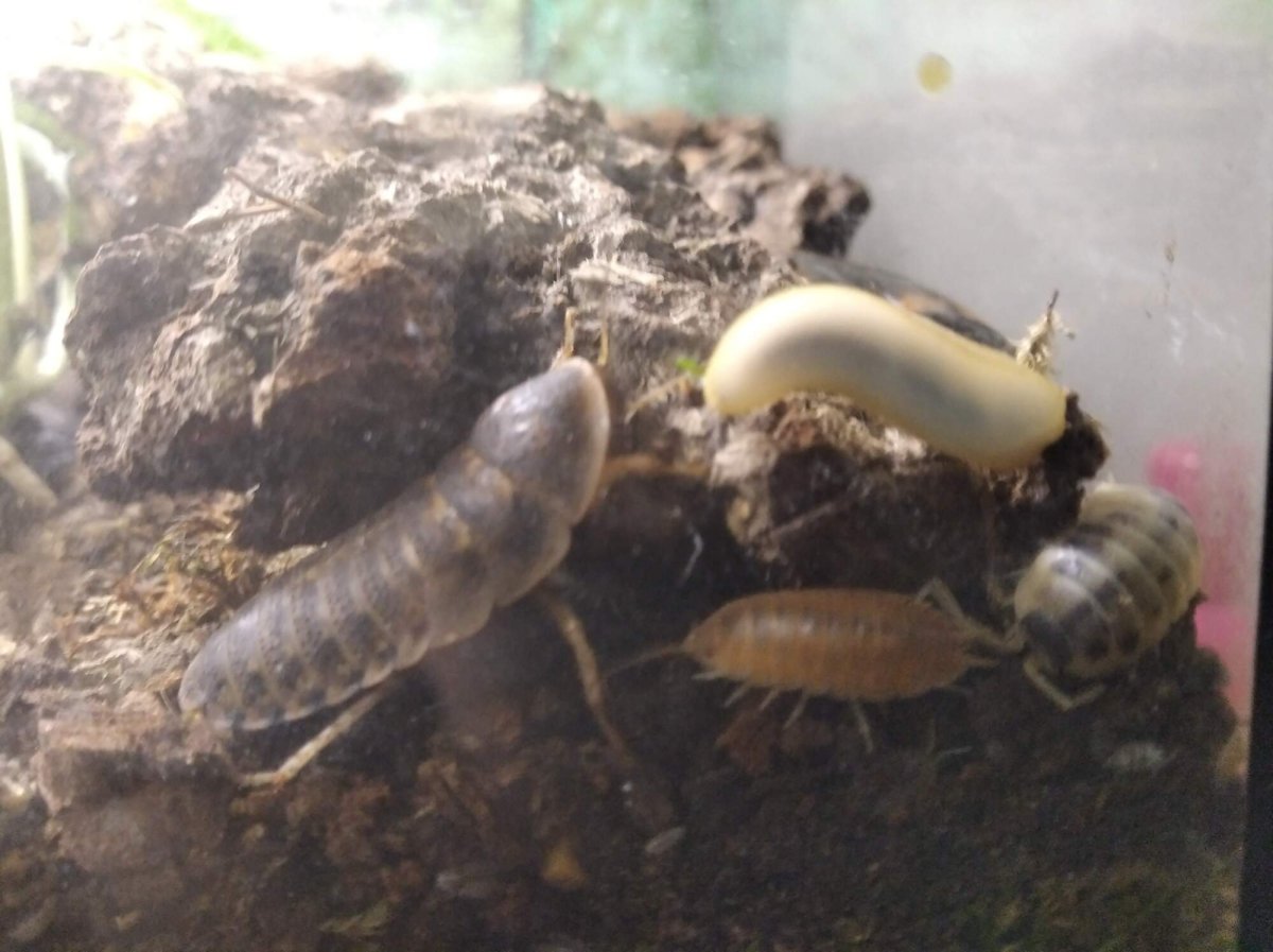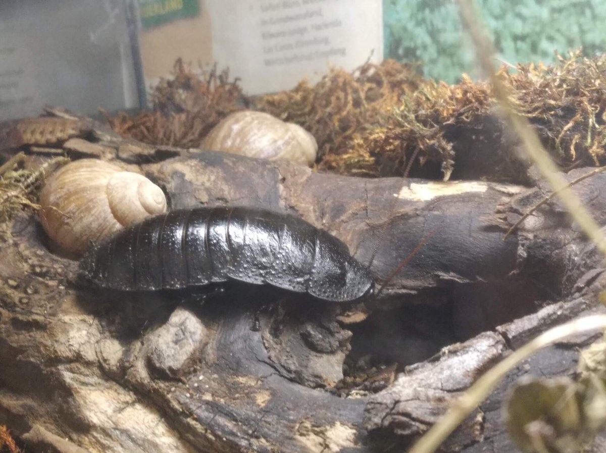 Jo, zapomněla jsem, chovám též jednoho oranžového slimáka 🙂 Na druhém fotu. Na třetím madagaskarská dáma, na čtvrtém madagaskarský pán. Na pátém stínka, o které jsem si myslela, že je to nějaká naše (stejně jako slíma by přibyla s přírodninami zvenčí), ale zdá se, že je to taky nějaká exotika, naše Oniscy mají širší sukýnky a jsou takové popelavě šedivé, tahle je hladká a lesklá, nachytala jsem tuhle v teráru dvě, takže možná jich časem bude víc 🙂