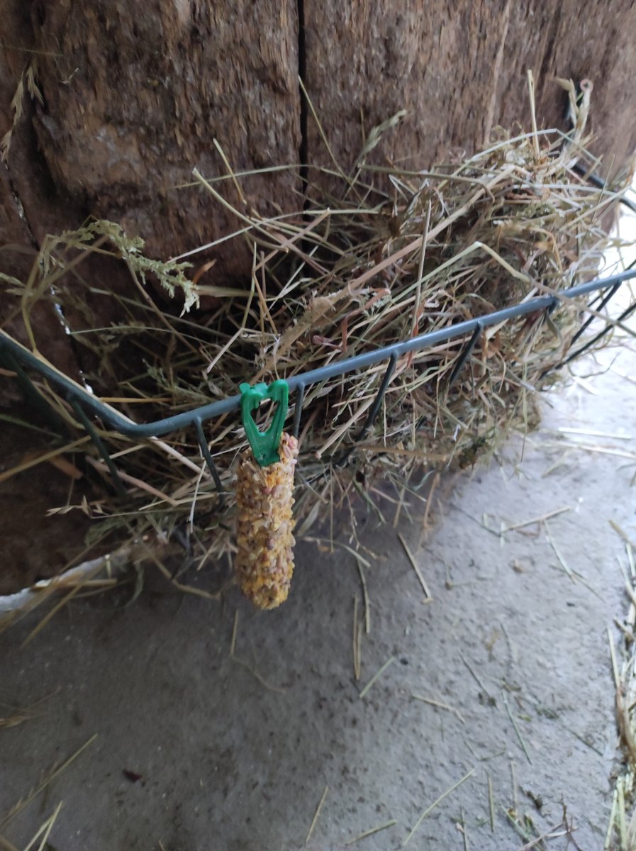je pravda že do Vánoc byli každý ve své dřevěné králíkárně oddělená morčata od králíka. Po vánocích šli do velkého společného chléva. Jenže králík začal morčata šikanovat jak říkáte. Honil je tak jsme chlív předělili napůl a jsou oddělení jen jsou v očním kontaktu. Přikládám i jejích krmení, ještě jsem zapomněla že dostávají speciální tyčinky které milují a větvičky na okus. Domeček mají a rádi ho využívají. Zřejmě to asi teda je že stresu od králíka. Myslíte že vadí i jen oční kontakt přes pletivo? Na fotce vidíte i okousané jablíčko.