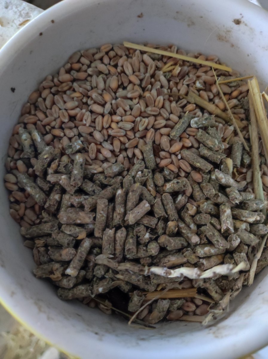 Tak oředně. Pšenice je zobaní pro drůbež, nevhodná pro savce. Králík má mít ječmen nebo oves, morče zrní nepotřebuje. Pro oba je základ seno, na přilepšení ta mrkev, jablko jim nic moc nedá, dobré krmení je krmná řepa, která všem chutná a není vodnatá. Soužití králíka a morčat bývá problémové, jsou to jiné živočišné druhy ( králík není hlodavec), nerozumí si navzájem. Králík je samotář, morče společenské. Králík může morčata šikanovat, toho si ani nevšimnete, napadat, mě kdysi králík, který ani s morčaty nebydlel, jen k nim občas skočil, morče ukousal a druhé těžce zranil. Jestli je kralík samec, pravděpodobně na ně skáče, samice to může ale dělat také. Ve vašem případě, nastudovat stravu, chování a přemýšlet o odděleném bydlení obou druhů.