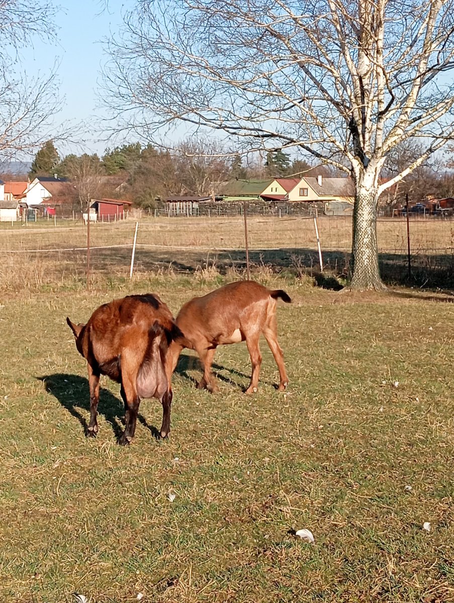 🤣🤣🤣ty uši!!👍…co se dalo dělat?..paní s hnědým plemeíkem musela zrušit chov a už nebyl čas shánět jiného😀. tady ty kozy už snad nikdo nechová..ale kozička Bětka,je pěkná,velká, silná.. máma Míša je take velká, po harckých kozách ..praprababičce..