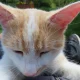 krmné myši. Nejmenší kotě z vrhu, prcek Tobi,