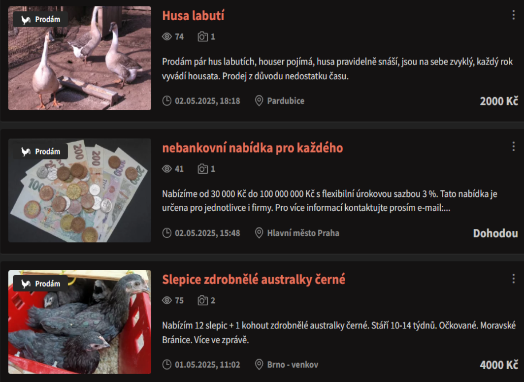 Co chtít po webu, kde v sekci Drůbež už 21 dní visí inzerát na půjčky a nikomu to nevadí, nikdo ho nemaže.