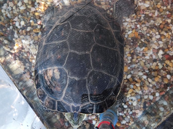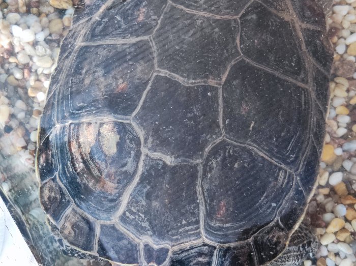 rád bych vás požádal o radu. Všiml jsem si, že moje želva (7 let) má na krunýři hrubou bílou skvrnu, obávám se, zda se nejedná o plíseň. Měl bych navštívit veterináře? Předem díky za všechny rady. Přikládám fotografii, skvrna je na levé straně na fotografii.