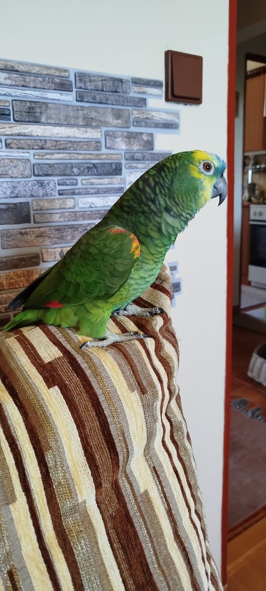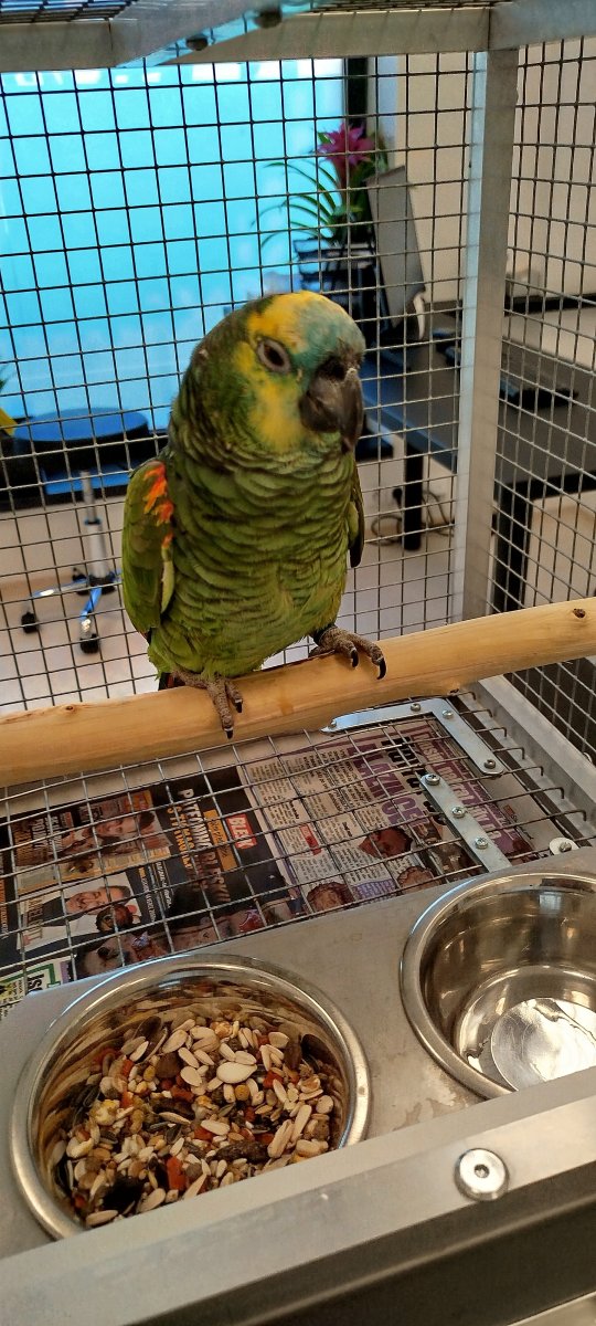 Posílám dvě fotky. Na první je kdy okusovala látku se kterou jsem na noc zakrýval klec. Na druhé fotce za týden u veterináře. Taky jsem týden pozoroval.