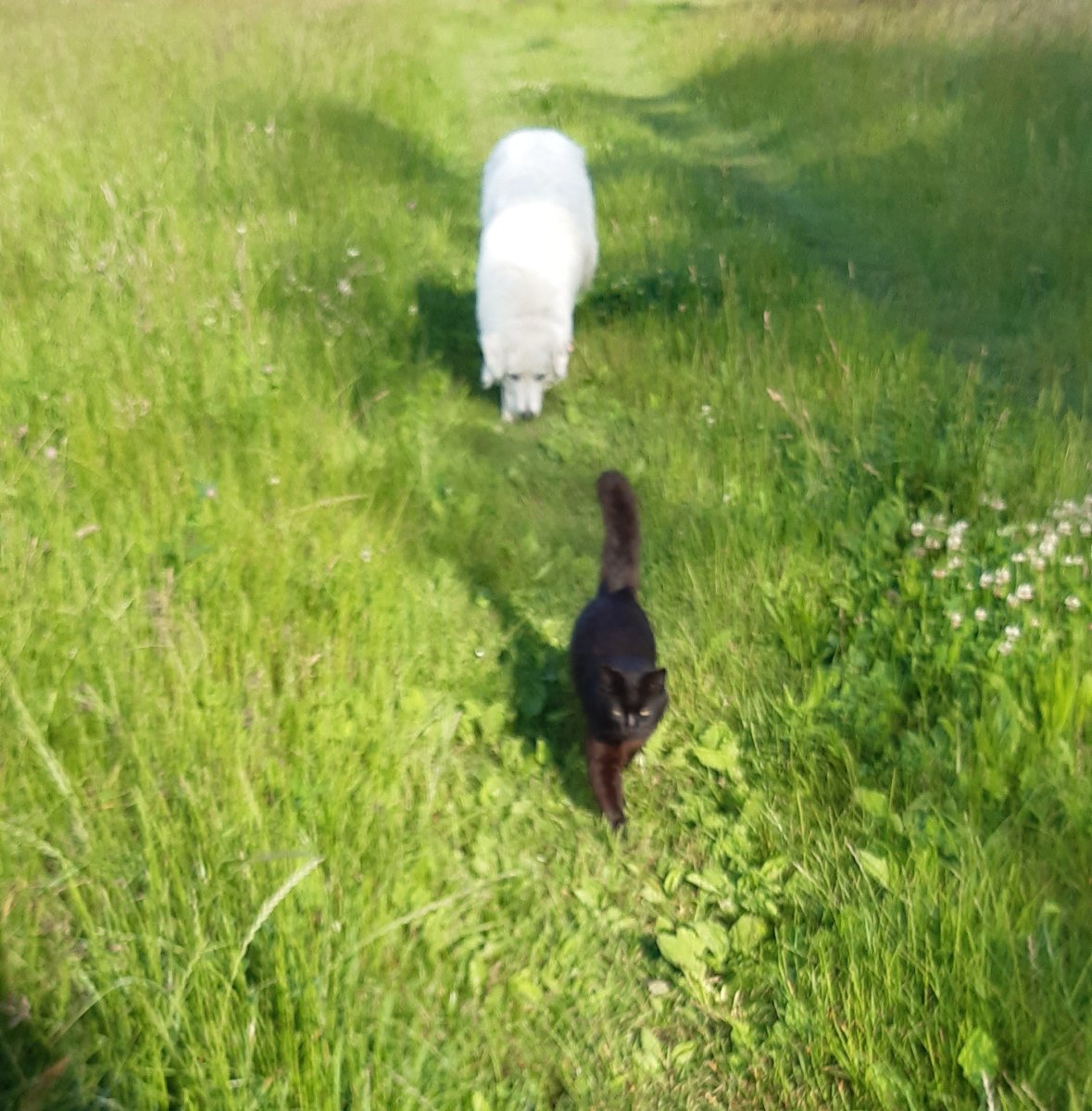 Jo a někdejší chalupový kocour s námi a se psem chodil až celkem daleko na pole. Tam jsme makali, on si tam lehl, a když se šlo zpět, tak se zas vydal s námi na cestu zpět.