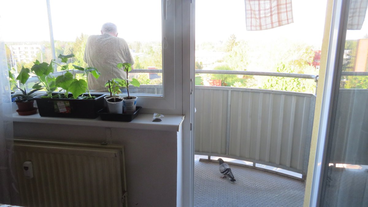 Tak holub stále na místě, dostal hrách , ale prej nic moc. Už je teda živější, než byl včera - vedle někdo psal o medu do vody, tak to jsem taky doporučila.