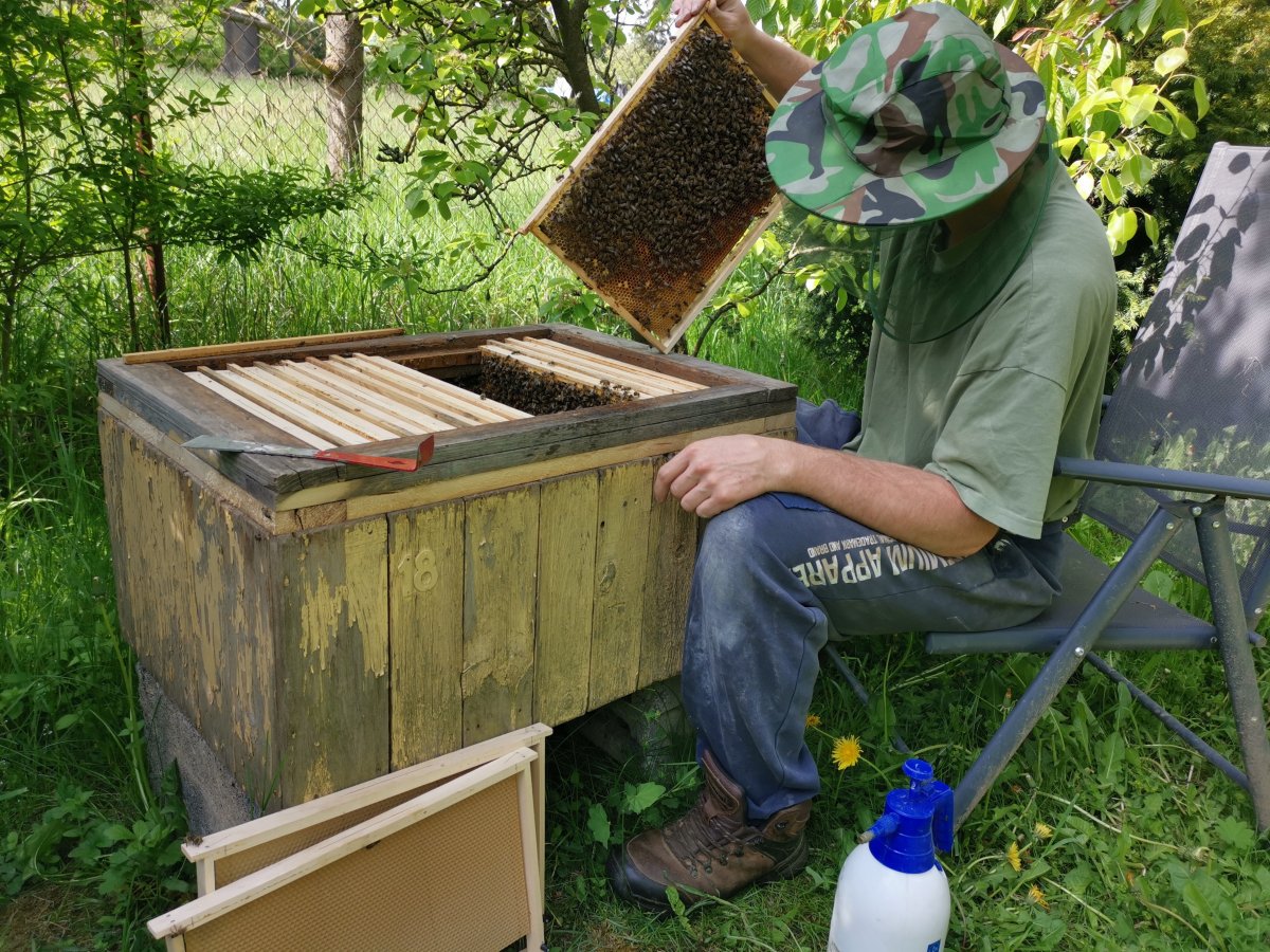Na závěr čistě můj názor, který nikomu nenutím. Jde o OP. Tato metoda počítá s kejkli jako jsou mateří mřížky, dokonce svislé mateří mřížky a cílem je přinutit, aby vč moc neplodovalo, aby plod byl někde, jinde pyl a hlavně med také jinde a bylo ho možné ze vč vyždímat do poslední kapky. A to vše za cenu doslova kejklů a pro mě nepředtsavitelné pracnosti. No a když se nad stavem vašeho vč důkladněji zamyslíte, vaše vč si udělao OP samo a vy jste nemusel žádnou vyšší pracnost investovat. Jasně píšete, že na vysokých rámcích je nad 20 cm pylu 10 cm MEDU. No a když budete nenažraný, těch 10 cm medu na rámku je kilo a tak můžete vytočit 4 kila medu zepředu + 2 kila zezadu. Med prodáte nejméně po 150 a tak máte devět stovek jako když je najdete ne? A bez OP!!!! Jenže pozor, na pylových deskách je nejspíš i pod 10 cm medu nahoře pyl též.