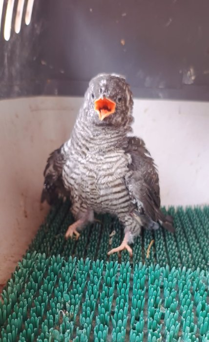 Při tomto úhlu vyfocení mláděte kukačky je názorně vidět,
