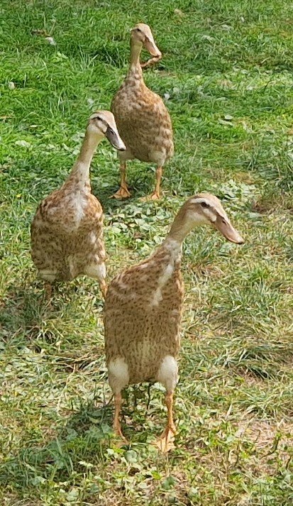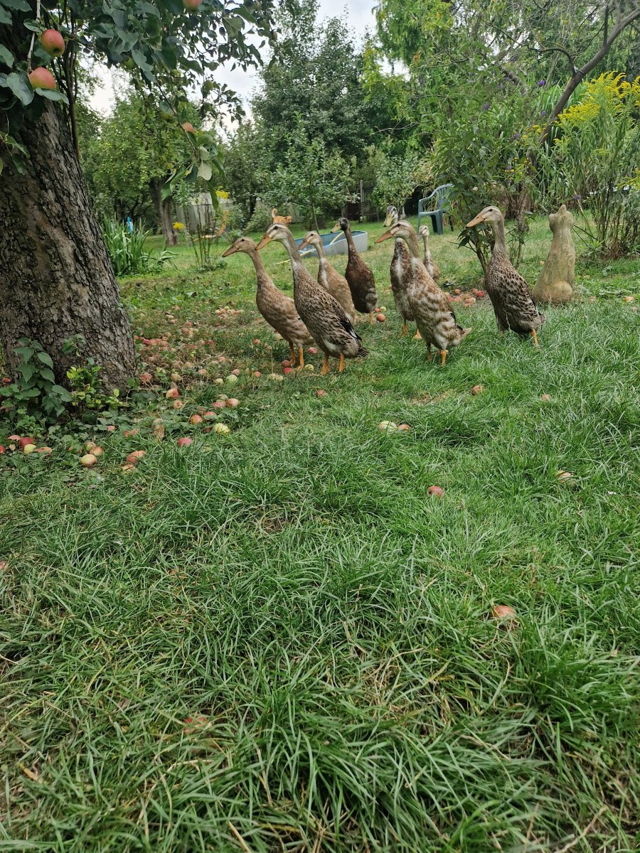 Přibíhají na volání “ kačkačkač”, chodí sami spát, na zahradě chodí za mnou, ale udržují si odstup.