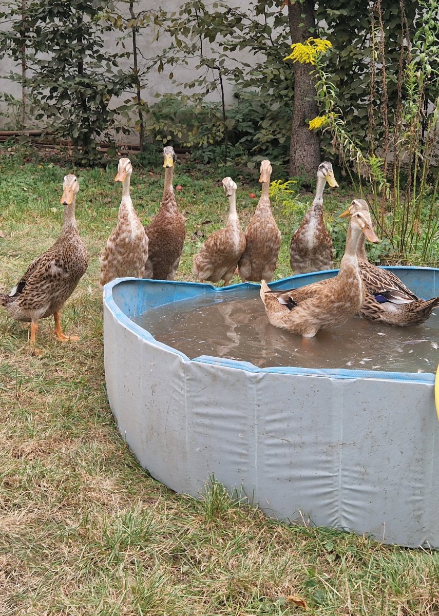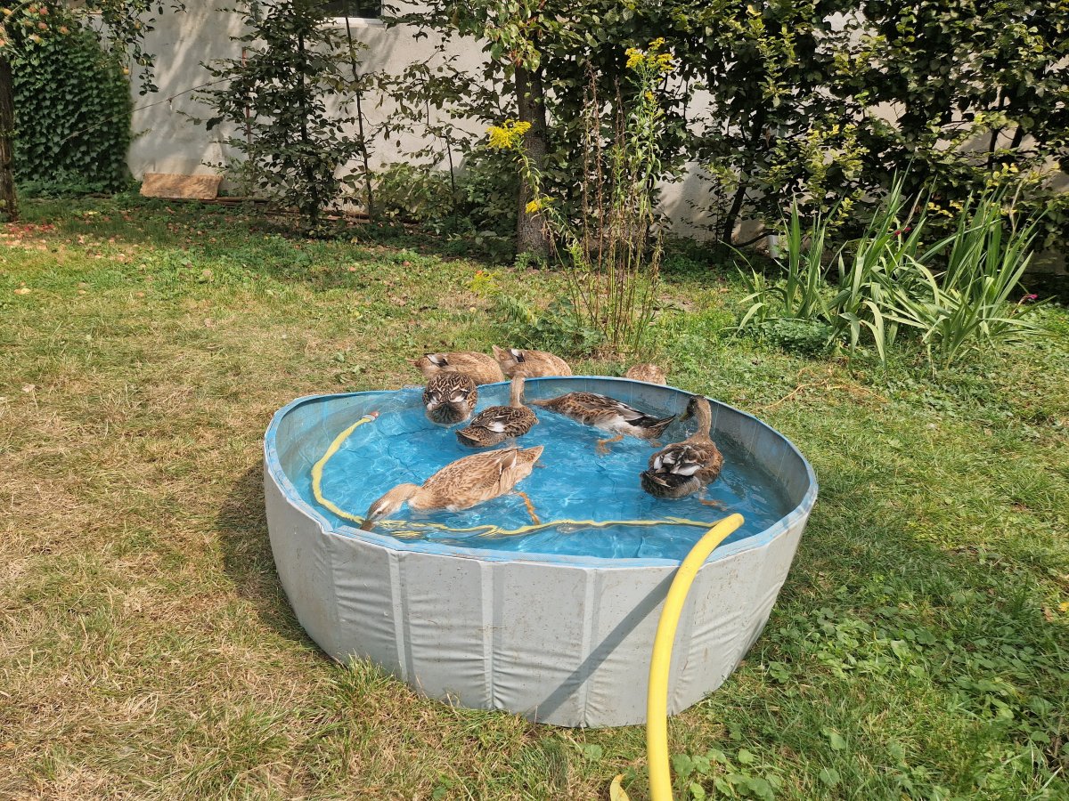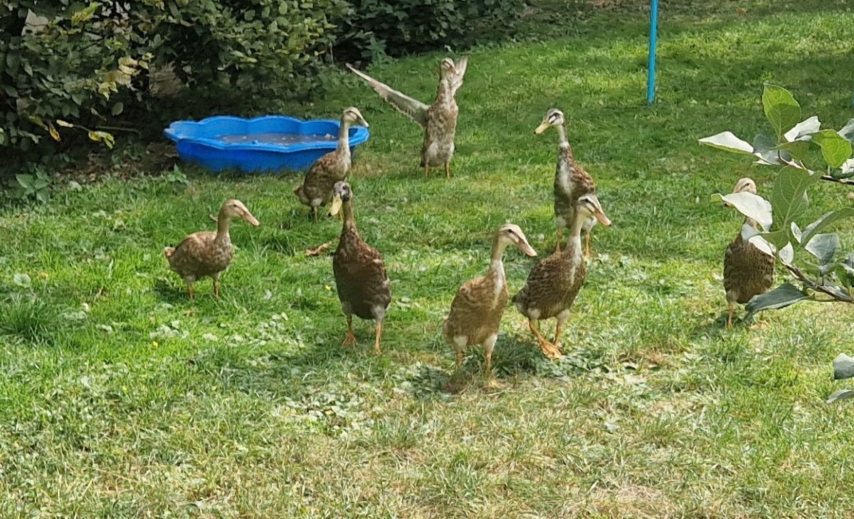 Pokálené jsme měli všecko, proto šli z domu. Máme kolem domu trávník, kde se zdržovaly především, do vysoké trávy do sadu se jim moc nechtělo, tak byl trávník víc hnojený, než by se nám líbilo. Pak jsme jejich pohyb regulovali právě těmi bazénky, ale i tak bylo vidět, že se jim běhá lépe po nízkém trávníku než v sadu, kde se kosí třikrát ročně. Tak jsme jim našli rodinku, kde předtím neúspěšně měli ovce, a tam byli všichni spokojení, kačky i noví majitelé.