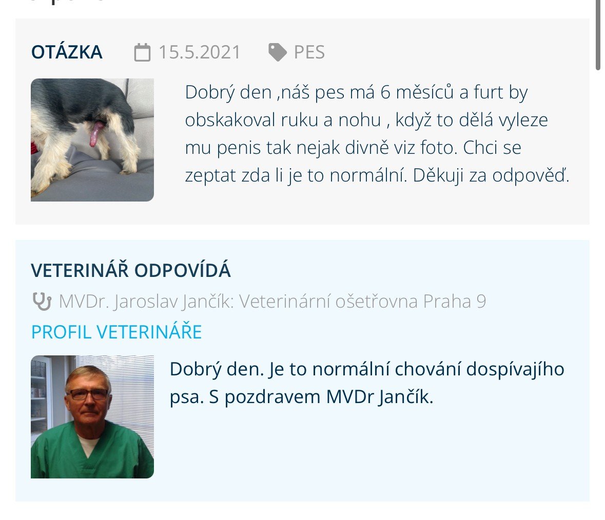 Moje máma má dva pejsky samce a nikdy tohle u nich neviděla 🙂 Pomalu ani doktorka na veterině …