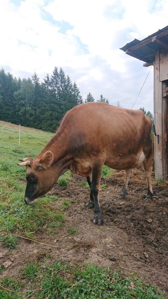 Kráva žere, Cyrilovi už mléko nějak pustí, ale vemeno má tak natekle, že se jí blbě chodí. Masirujeme ji ho několikrát denně, vidíme, že Cyril pije, ale my nedojime. Jinak čekáme co to udělá. Včera vet slíbil, že to ještě probere s nějakými dalšími veterináři. Posílal jim fotky, tak uvidíme.