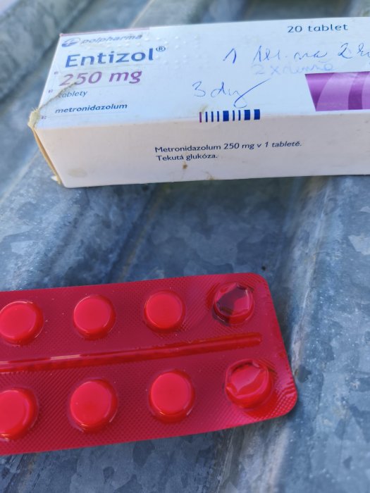 Pěkný večer. Potřebuji poradit. Jeden krocan z hejna je mimo ostatní a méně žere, jen pije. Má tmavší hlavu než ostatní. Je to černohlavost? Přikládám i hovénko. Mám entizol z dřívějška dneska už neprodejný. 250 mg metrodinazol tablety. Jak je dávkovat 6 kg krocanovi?