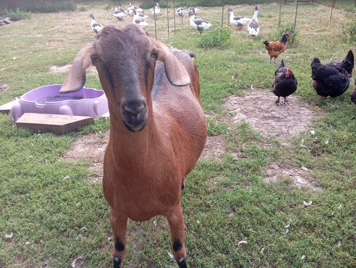 😄kdepak březí !!..to je rok a půl stará kozička, tak akorát teď k připuštění, poprvé..to jsou fotky někdy z léta, teď je trochu větší..už je větší, než její máma Míša 😄🤦..takový koníček..😄