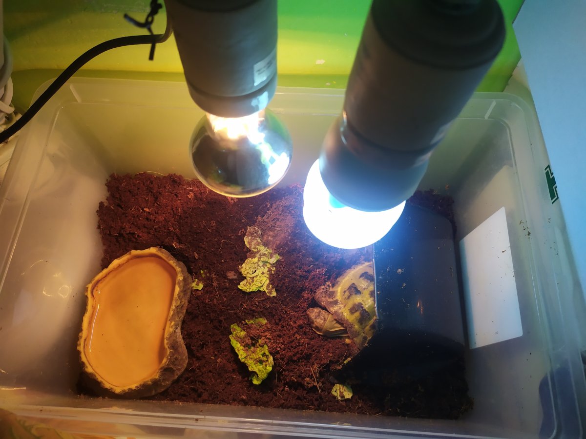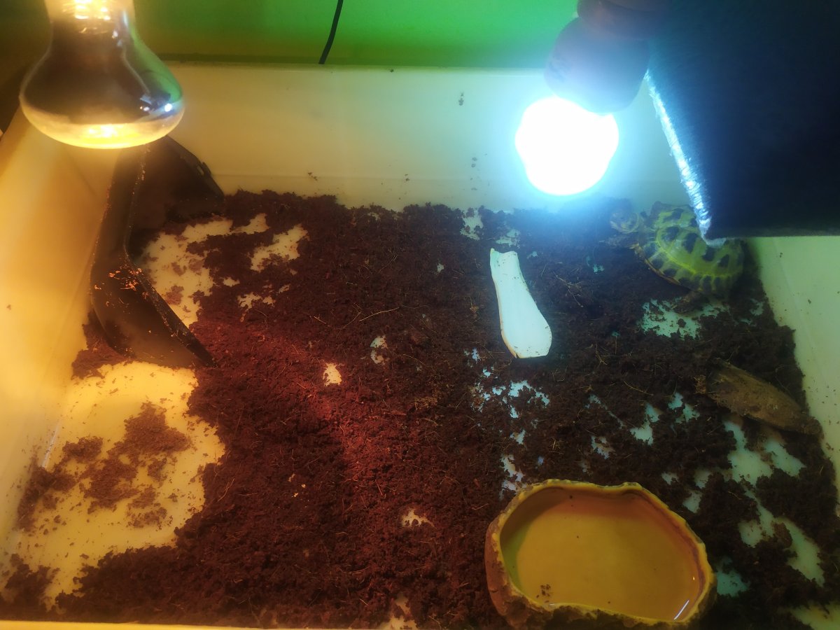 Dobrý den, nyní už má smysl odpovídat pane Šebela. Nepotěším vás však. Podmínky pro život vaší želvy jsou na samé hranici přežití. Usuzuji z toho že želva je, nebo alespoň byla, mimořádně životaschopný jedinec s pevným zdravím pokud to dokázala zvládnout celé dva roky. Máte-li možnost a skutečný zájem podmínky chovu vylepšit můžeme se do toho postupně pustit, ostatní chovatelé možná také pomohou. Zatím máte 1/ Nedostatečný prostor k chovu. 2/ Zcela nevhodný substrát. 3/ Otřesnou skladbu podávané potravy, pekinské zelí ještě ujde ale ten ledový salát jako základ je zcela mimo. 4/Umístění tepelného a UV zdroje uprostřed "terária" vylučuje vytvoření nutných teplotních zón a tudíž volby želvy která teplota jí momentálně vyhovuje. Fakt je že v tak malém prostoru přijatelné řešení je obtížně dosažitelné, spíš nedosažitelné. 5/Miska s vodou je v terku proč? Je to pouze ohnisko možných infekcí a při uváděné skladbě předkládané potravy je jako zdroj vody u želvy stepní úplně zbytečná. Bohatě stačí želvu jednou týdně vykoupat a dodržovat noční zvýšení vlhkosti. 6/ Pokud máte zájem zjistit odhadem současný pravděpodobný zdravotní stav želvy, musíte poskytnout fotky které takový odhad umožní viz. foto