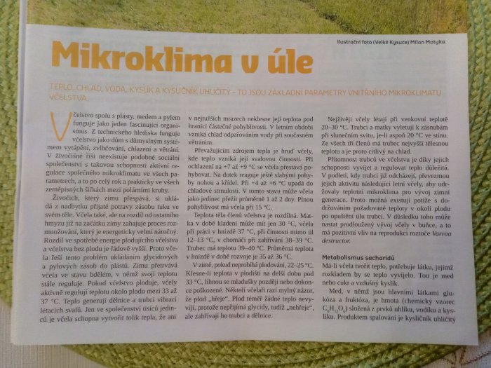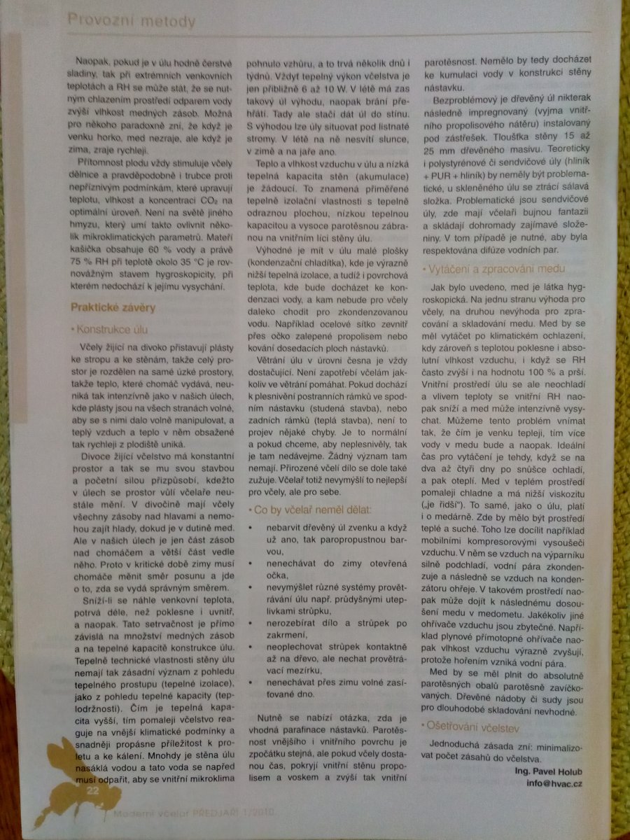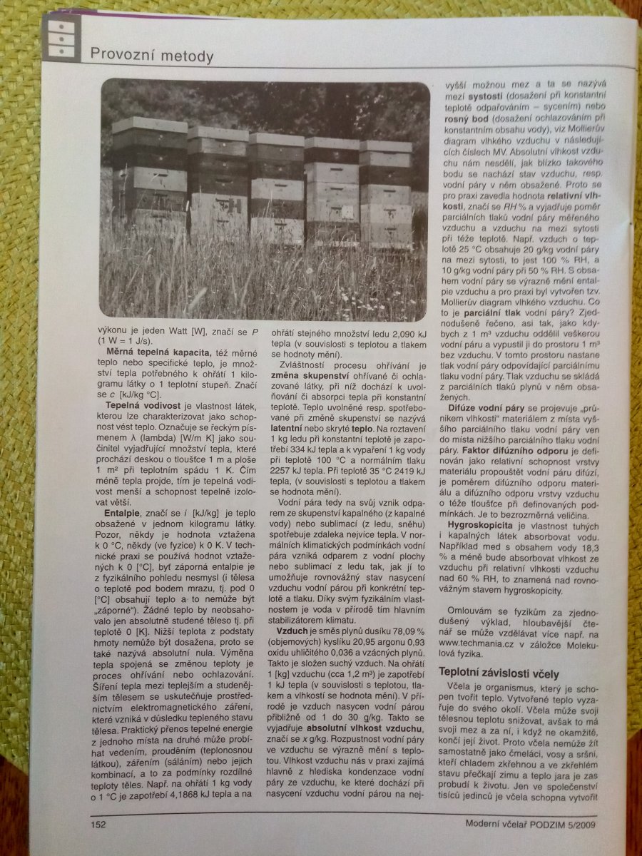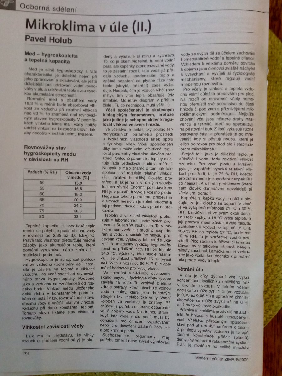Nedávno jsem si objednal čtyři výtisky z Moderního Včelaře kde se pojednává o mikroklimatu v úle hydroskopicity a tepelné kapacity medu atd. Je to vcelku zajímavé počtení i když některé věci jsou napsány vědecky. Možná jsou v textu zodpovězeny otázky některých zdejších diskutujících, proto jsem založil toto nové téma. Nafotil jsem jednotlivé texty, které budu přikládat postupně.