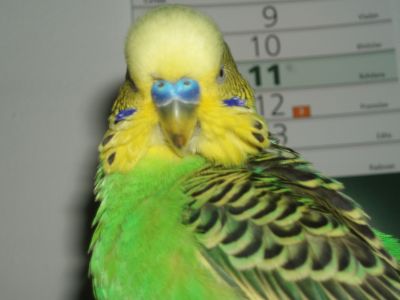 Téměř na špišce zobáku se mu udělal takový malý šedivý flíček a který je nyní uprostřed dokonce bílý - slyšel jsem, že zobák by měl být celý jednobarevný. A k tomu jsem teď zjistil, že má rezavý trus (tak doufám, že to nebude krev).