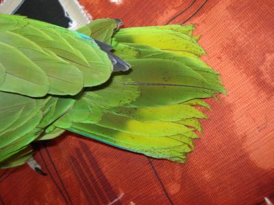 anonymní (neregistrovaný)18.02.2009, 10:49:39xxx.xxx.248.114Ahoj, potřebuji poradit. Už delší dobu pozoruji na svém amazonanu "vadu barvy na peří". Jedná se o skvrny na ocasních perech a na křídlech. Myslím si, jestli to nemá jen nějak poškozený, když si hraje tak někdy pěkně řádí, třeba polámané o klec. Jinak ho krmím různým zrním pro středně velké papoušky, dostává ovoce, těstoviny, zeleninu občas i maso (uvařené). Jako doplněk i vitamíny. Doufám, že to nebude nic vážného, předem děkuji. Dávám foto.