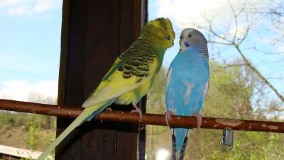 samec je tmavě zelený perlový, samice je straka. Nemám s podobně vyvedenými ptky zkušenosti, tak nemohu říct zda recesivní či 2F. Mladé po těchto by měli být na žlutém základu - zelené barvy... a perlové, straky či kombinace. Neznáme rodiče, je možný výskyt i dalších.