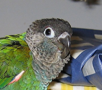 na obrazku papousek pred zakrokem u veterinare (co 2 mesice chodime zabrusovat)