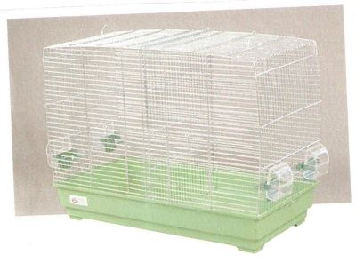 Materiál nevím. Dvířka nejsou sice vletová, ale pro takovou malou klec - pro andulku to postačí. Postranní dvířka pro budku jsou také perspektivní. Takže celková známka 2-3 :-)
