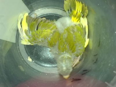 Aktuálně z mého chovu: včera při kontrole jsem zjistil v budce páru č.1 3 vylíhlé mláďata a jedno nakřápnuté vajíčko. Mládě se nemohlo proklubat ven z vajíčka a proto zahynulo ve vajíčku. Mládě bylo už ochmířené. Bohužel i toto se stává a pokud na to příjde chovatel za včas, tak je možnost pomoci mláděti ven z vajíčka a zachránit ho. Proto vám všem radím začněte zvykat papoušky na kontroly budky.