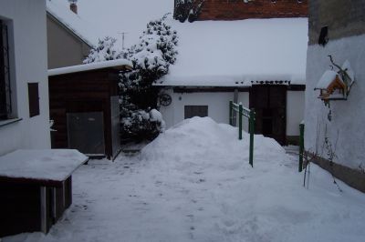 Dveře nemají bezpečnostní zádveří, zatím mi nic neuletělo, i když tam cpu velký pařezy a šutry, ovšem je to otázka času,takže to bych tam aspoň 1m ještě udělala, kdyby byl prostor.
