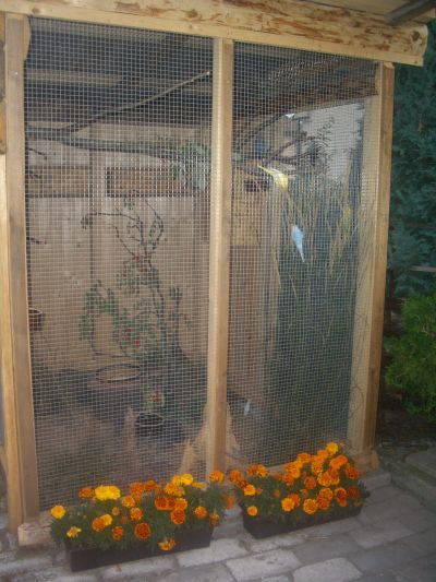 Už teď vím, že by voliera měla být větší , ráda vevnitř tvořím "přírodní "prostředí a nemám moc prostoru:-)),každopádně delší určitě.