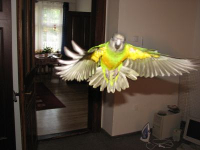 A taky když je zrovna v kleci a nemohu ho pustit ven strašně tam dovádí po dně, je to u vás taky takové. Skáče ze strany na stranu jak o život. A vůbec, když je v kleci tak tráví dost času na zemi, kvůli tomu měním podestýlku(dávám tam noviny) dvakrát deně. Ještě že chodí takových letáků :-) Jsem si říkal jestli by nebylo dobré na dno klece dát nějaké pletivo aby se nedostal do těch případných exrementů, ale zase jsem si říkal, aby si tam nepolámal nohy, když je tak zbrklí. Co vy na to? A ještě jedna věc, je normální že papouch jakýmsi pohybem ze se be dostává potravu a pak jí papá, je to potrava co má ve voleti? Je to normální?A nezapomeňte odpovědět i na tu vodu. Díky ;-)