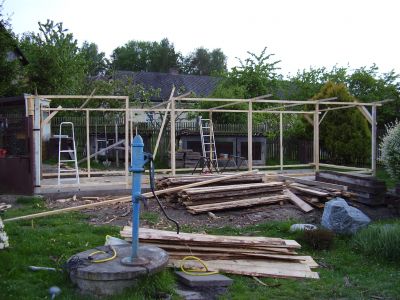 jarda flekal (neregistrovaný)10.04.2010, 16:40:56xxx.xxx.2.142dobrý den,konstrukci kde je zálet,tak jsme nejdříve sešroubovali po dvou metrech přední a zadní stranu,což jsme vše zavětrovali střešníma latěma,sešroubování proběhlo na zemi na rovině,a když byla postavena celá zadní a přední strana tak už jsme jen zpevnili celou konstrukci,a na venkovní výlety jsme udělali nejdříve přední stranu na půl po 4m a opět zavětrovali,vše uděláno na zemi na rovině a k tomu jsme pak už jen šroubovali celé rámy na rozdělení výletů,opět připravené někde na rovině.posílám foto