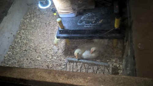 Po vylíhnutí hned dát kuřata pod infralampu do odchovničky s krmením na papíře a s napáječkou. Opatrně jim namočit špičku zobáčku do vlažné vody v napáječce. Aby věděli, kde je voda. Musí se napít po vylíhnutí.