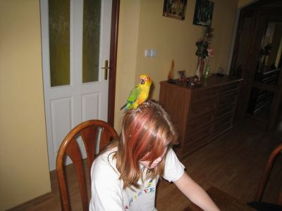 Chceme koupit papouška pro tatíka (vozíčkář), aby se doma nenudil - pracuje doma na počítači, prakticky tam tráví věršinu dne, s papouškem souhlasí, takže nechtěný dárek to určitě nebude. Jinak jsme pětičlená rodina, od dvou hodin býváme všichni doma.
