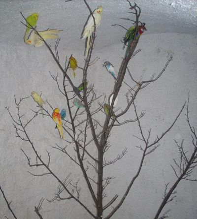 Včera jsem přemístil všechny mé papoušky do zimních voliér( do sklepa). Teplota ve sklepě neklesne pod 10 stupnů, takže tam mají docela teplo a vlhkost je 60-70%, což taky vyhovuje. V tom by samozřejmě problém nebyl, problém je v tom, že ve sklepě je jedno malé okínko s kterého jde více zimy než světla, tak jsem ho prostě zacpal skelnou vatou a přikryl překlížkou. No a tět neni ve sklepě vůbec žádne denní světlo, pouze úsporná žárovka 20w, která svítí od 07:00 do 20:00.