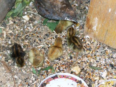 Po vylíhnutí mladých voliéru u dna zabezpečíme pruhem fólie či plastu, aby se kuřátka neprotáhla pletivem. Dále dáme pozor na misky na vodu, musí být co nejmělčí. V hlubších miskách se budou kuřátka brouzdat a mohou pak prochladnout, nebo se mohou dokonce utopit. Mě se nevíce osvědčily malé keramické misky pod květináče. Pro jistotu je můžeme ještě naplnit několika většími kamínky či oblázky, aby se tam kuřátka nemohla brouzdat.