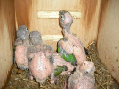 Orina (neregistrovaný)07.06.2010, 12:58:30xxx.xxx.72.67Podle dorostlých zelených letek,je vidět, že jsou oškubané. Nic se neděje, vyndejte je z hnízda do dřevěnné budky s hoblinama (pokud nemáte inkubátor) a začněte dokrmovat. Krmení bude Nutribird 18. Krmte 6x denně a po týdnu to omezte na 5x denně. Ať se vám daří a hlavně papouškům.