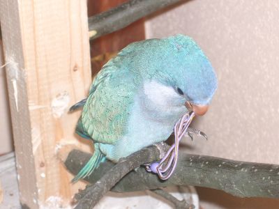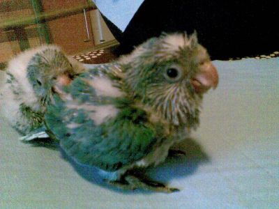 Moc se sice v chovu nevyznám, ale i když je váš mníšek moc hezký, je zvláštní, že je tak mladý a tak krásně opeřený, náš byl tedy pěkný "pankáč" a to jsme si jej dovezli, když měl skoro 8 týdnů. Posílám vám fotečku, jak vypadal, když mu bylo 6 týdnů - to jsme si ho vyhlídli u chovatele.