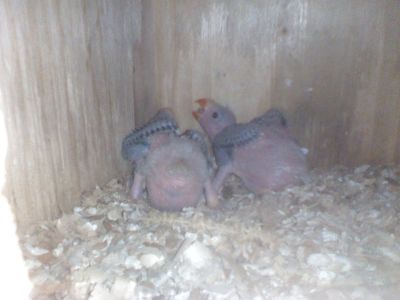Dneska jsem při kontrole budky zjistil, že se klube první mládě, tak uvidím, kolik jich nakonec bude. Nasadil už jsem zase míchanici. Samec už samici krmí v budce. Večer napíšu, jak to dopadlo a jestli je už mládě vyklubané. Zrovna teď s klube.